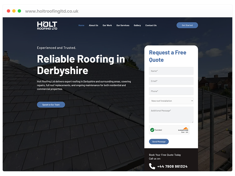 Holt Roofing Ltd, a roofing company serving Derbyshire and surrounding areas, needed a professional website to help the business move beyond relying mainly on Facebook and phone calls. With no dedicated website in place, there was no clear way to present services properly, make use of existing Google reviews, or give potential customers an easy route to get in touch online.
